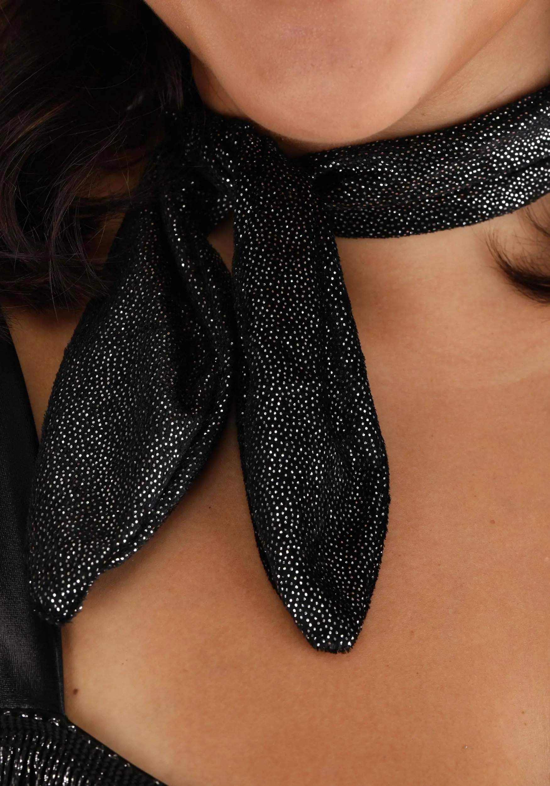 - Metallic knit choker has hook & loop fastener at back, same-fabric knot at front