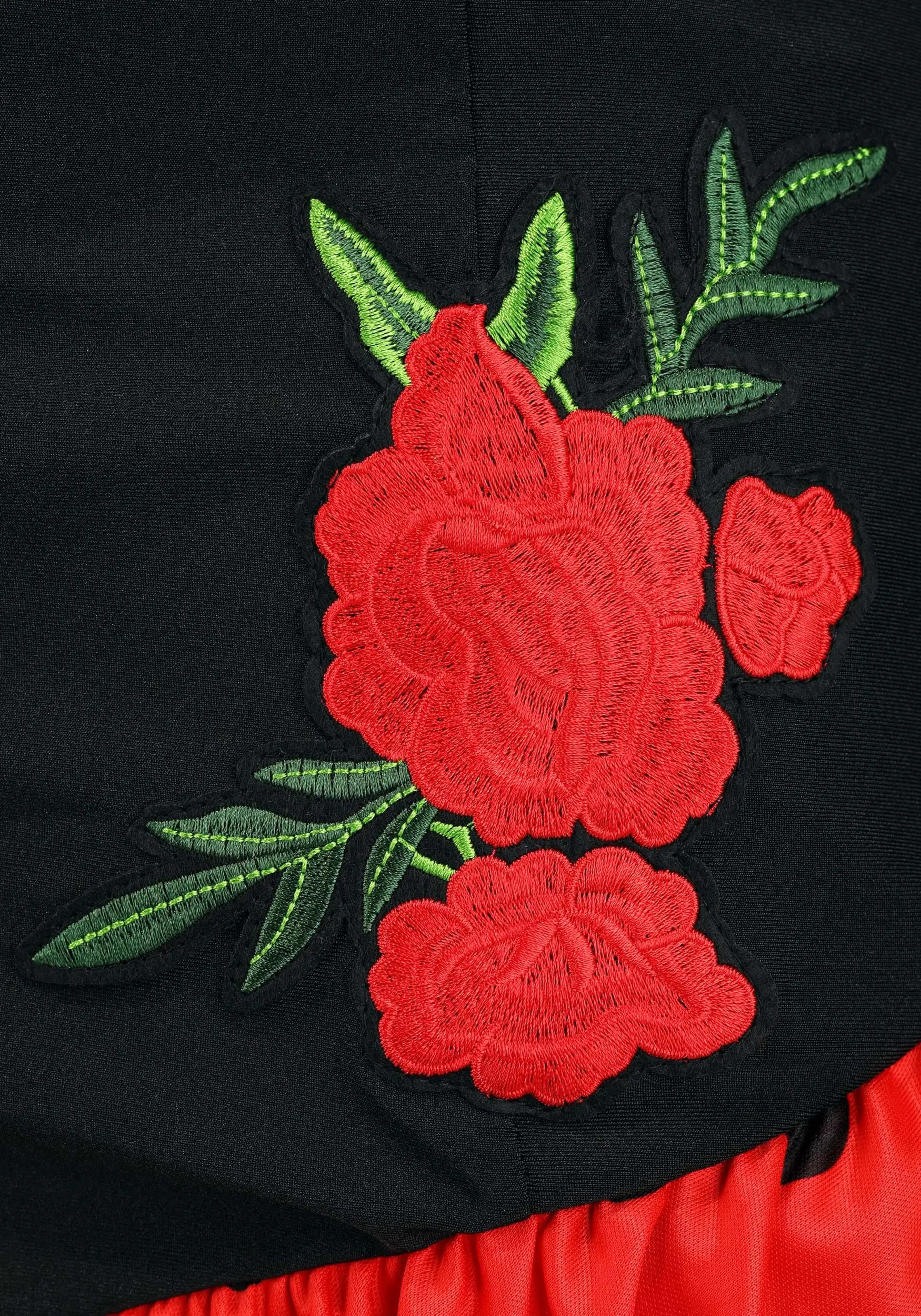 - Embroidered roses on front