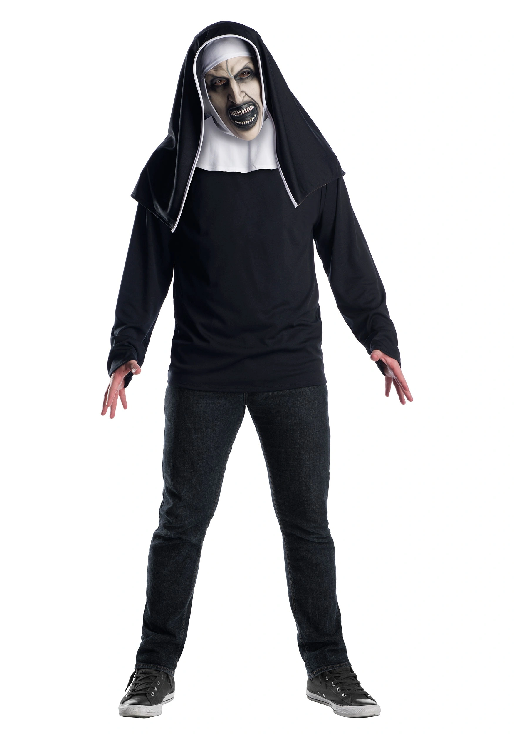 You’ll look just like you stepped out of the movie screen when you throw on this haunting mask. Her teeth are bared and as always her skin is gray and wrinkled. The whole thing is topped with a wimple to remind folks of your calling.